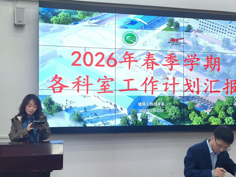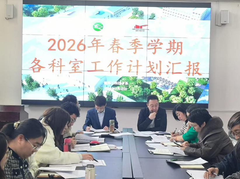 3月12日下午,内蒙古农业大学职业技术学院建筑工程技术系召开2026年春季学期各科室工作计划汇报会议,全面部署年度重点工作,明确发展方向、压实工作责任。系党总支书记王锋、系主任王寿东、系副书记杨海燕、系副主任程慧娟出席会议,系办、教办、各教研室主任,党建工作办公室成员及教师代表参会。